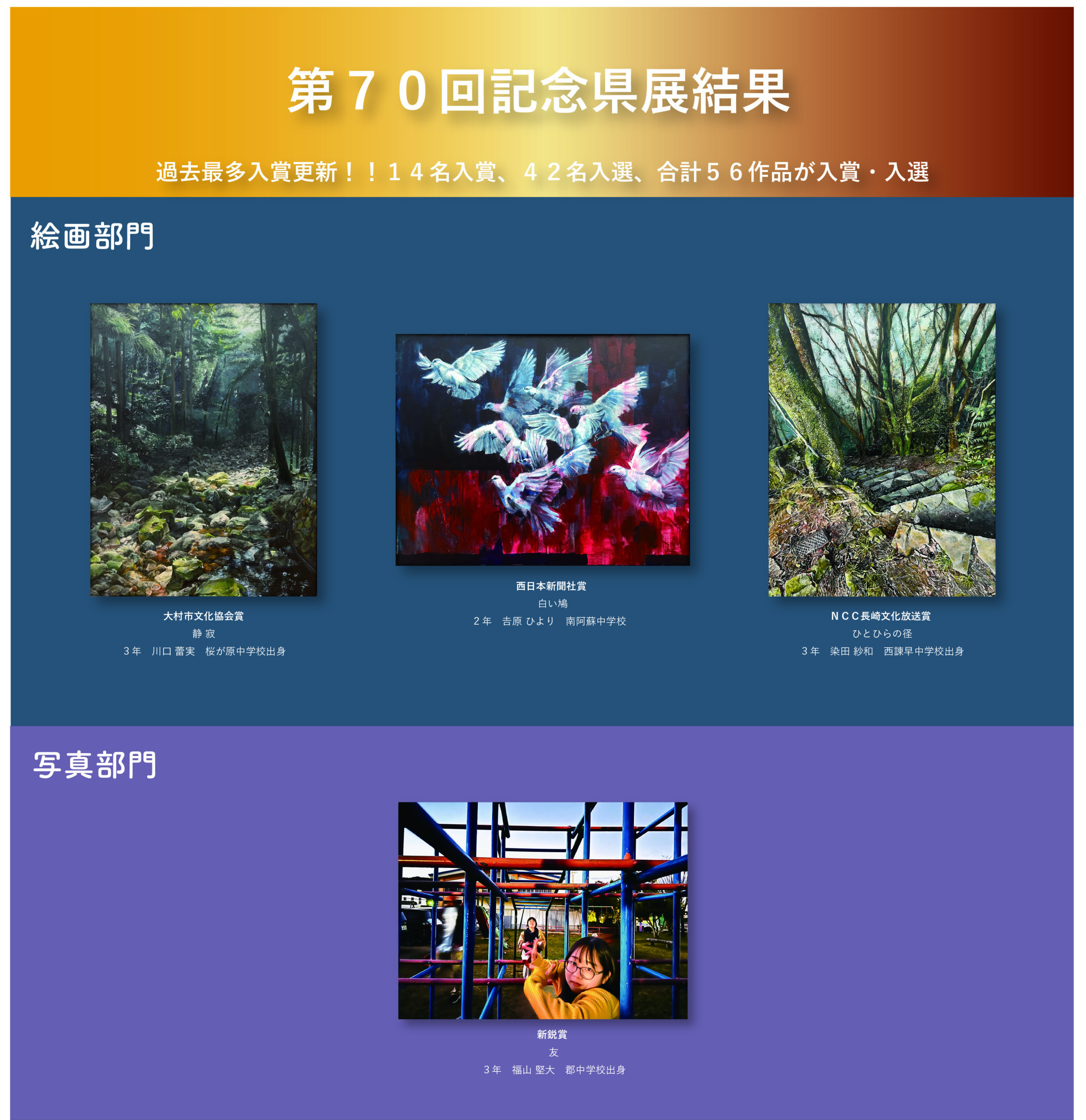 第70回記念県展の結果は過去最多入賞の14名となりました。入選者は42名です。