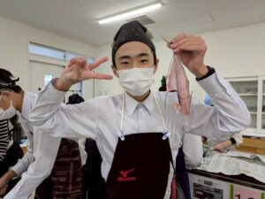 難しいと思っていましたが、プロの方に丁寧に教えていただいて、みんな「あじ」と「イカ」のお刺身をキレイに作ることができました。