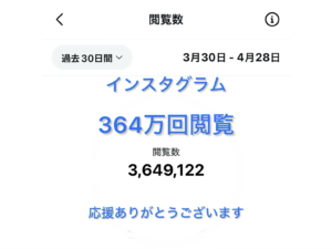 1ヶ月で364万回以上も、私の投稿を見ていただき、本当にありがとうございます。