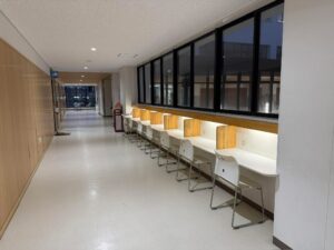 職員室前に広がる学習スペースは、本校自慢の“学びの拠点”