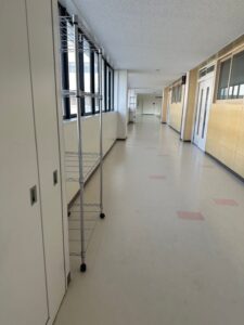 放課後の校内、在校生たちが自主的に清掃に取り組む姿が見られます。