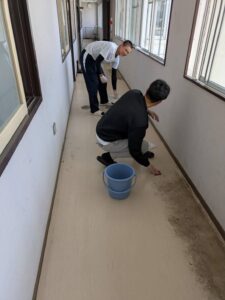黙々と床を磨き、隅々まで心を込めて整える姿。その一つひとつの行動に、「仲間を迎える」という温かな気持ちがあふれている。