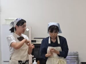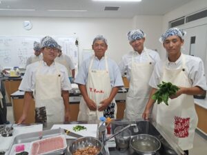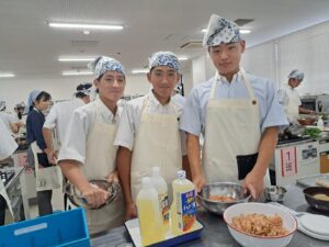調理実習に臨む生徒さんたち、しょうが焼きの香りと同じくらい魅力的であった。