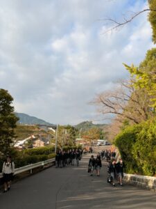 今朝も頑張って日大坂を上ってきてくれる生徒さんに感謝の気持ちをこめて見守っている。