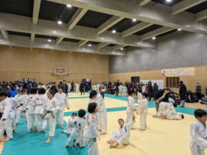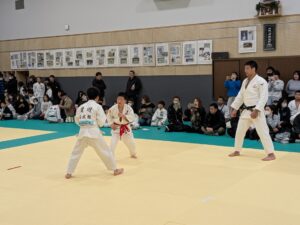 吾輩注※ 説明しよう。永瀬貴規杯柔道大会とは、そもそもがコロナ禍の頃、すべての大会等が中止を余儀なくされていた頃、「幼年・小学生の大会だけでも何とかできないか。」と考えた本校柔道部の松本太一先生が発案し、手作りで開催したものである。五輪3大会出場、2大会連続の金メダルに輝いた永瀬選手も最初から、オリンピックイヤーであっても忙しい中、必ず参加してくれている。その規模は年々増加しており、県大会どころではない出場者数になっている。