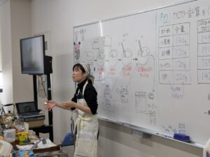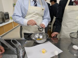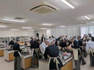 実習室をのぞくと、家庭科の才木先生の元気かつ的確な指示が飛ぶ中、皆さんが楽しそうに取り組んでいる。実にいい光景である。
