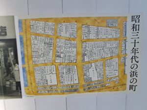S東美跡地の前の壁には、昭和中期の写真と昭和30年代の浜の町の地図が飾られていた。「子供の頃の雰囲気だなぁ。」としばし見つめてしまった。