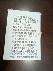 その手紙の中に「日大坂を上るたびに、先生の元気なご挨拶に背中を押され、気持ちよく1日をスタートすることができていました。」という記述があった。