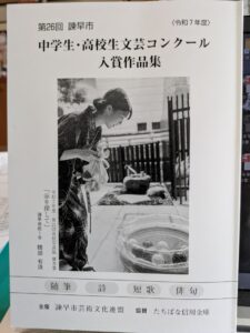 吾輩もちとひと休みというところで、毎年発行を楽しみにしている「諫早市中学生・高校生文芸コンクール入賞作品集」の頁をめくってみた。