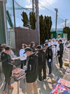 長崎日大の野球部は、堀先生、松瀬先生、松本先生、的野先生、金城先生、そして、現在の平山先生へと「監督」のバトンが引き継がれてきたわけだが、現在をそれぞれの世代を超えてまとまったOB会の皆様があらゆる面において後輩たちを応援してくださっている。春のセンバツ出場をひかえた後輩たちへのエールとしてのバーベキューなのである。
