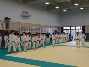 N.アリーナをのぞいてみると、柔道場には、福岡の伝統校であり、強豪校である嘉穂高校さんが出稽古に着ていた。