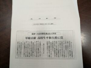 1月の中頃だった。長崎新聞に、2025年第28代高校生平和大使についての記事が掲載されていた。