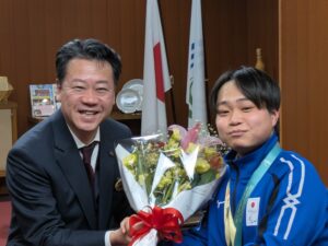 その素晴らしい成績が認められ、昨日は諫早市役所に招かれ、大久保市長さんに表敬訪問を行った。