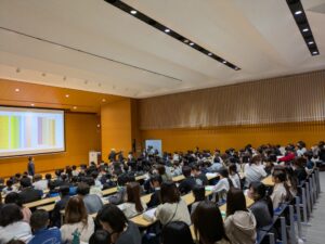 朝から、本館2階のビジュアルホール(約250人収容)は、新入生の皆さんとその保護者様で満席状態であった。