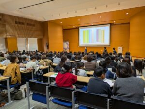 朝から、本館2階のビジュアルホール(約250人収容)は、新入生の皆さんとその保護者様で満席状態であった。