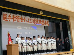 本日は、その選抜旗の授与式とともに、壮行会が開催された。