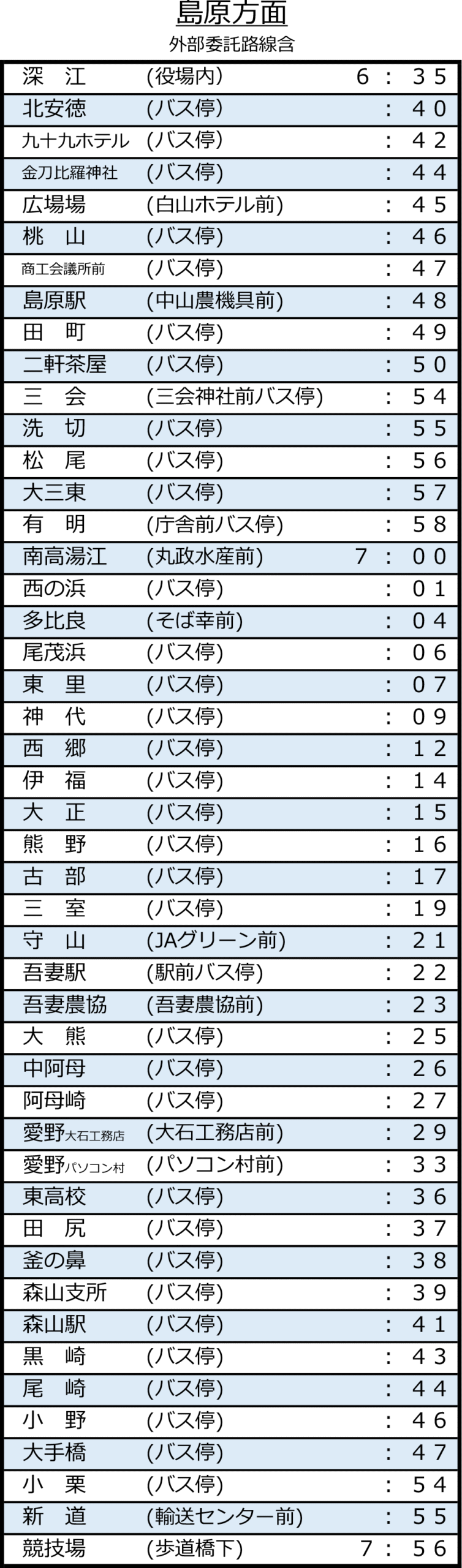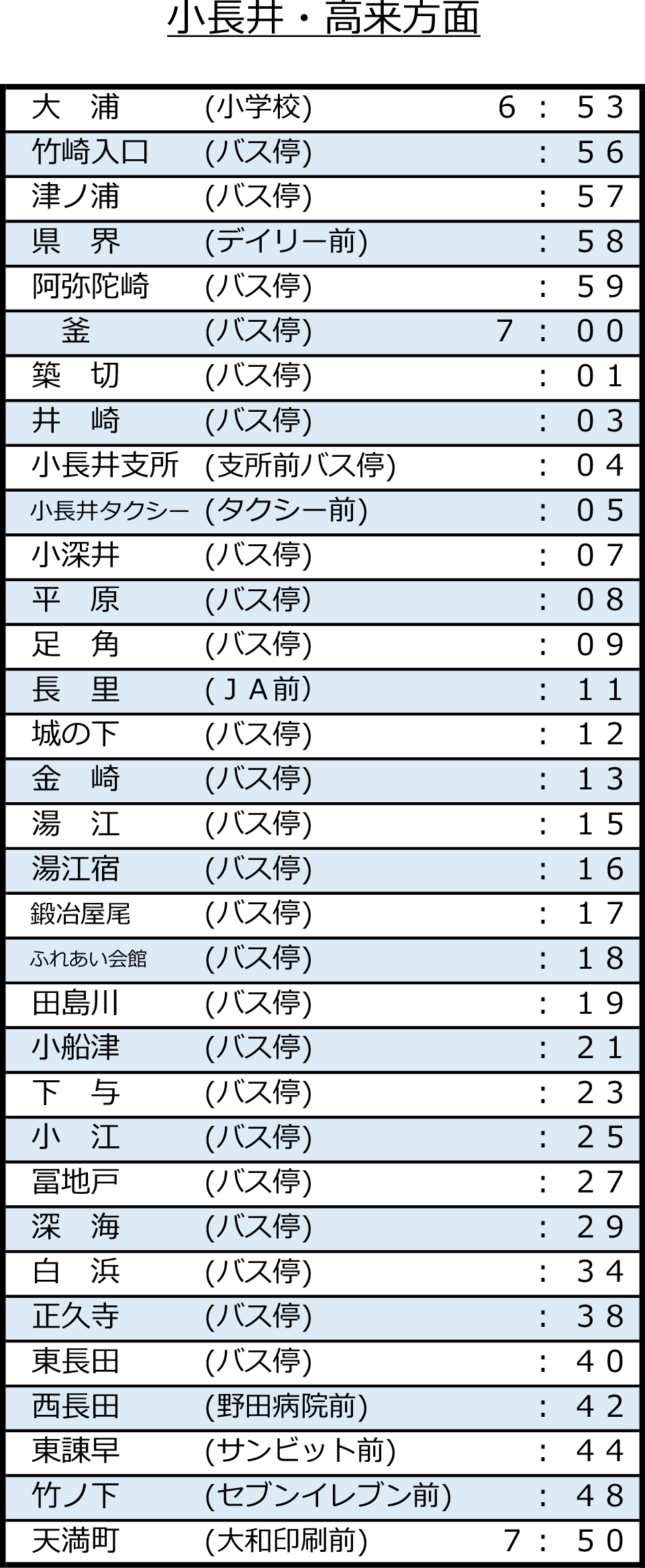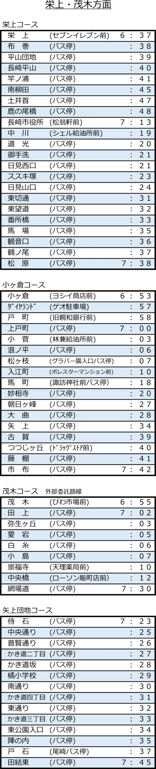 スクールバス乗車区分及び時刻表(令和7年10月1日改訂) 変更になっている場合がありますので詳しくは本校までお尋ねください。