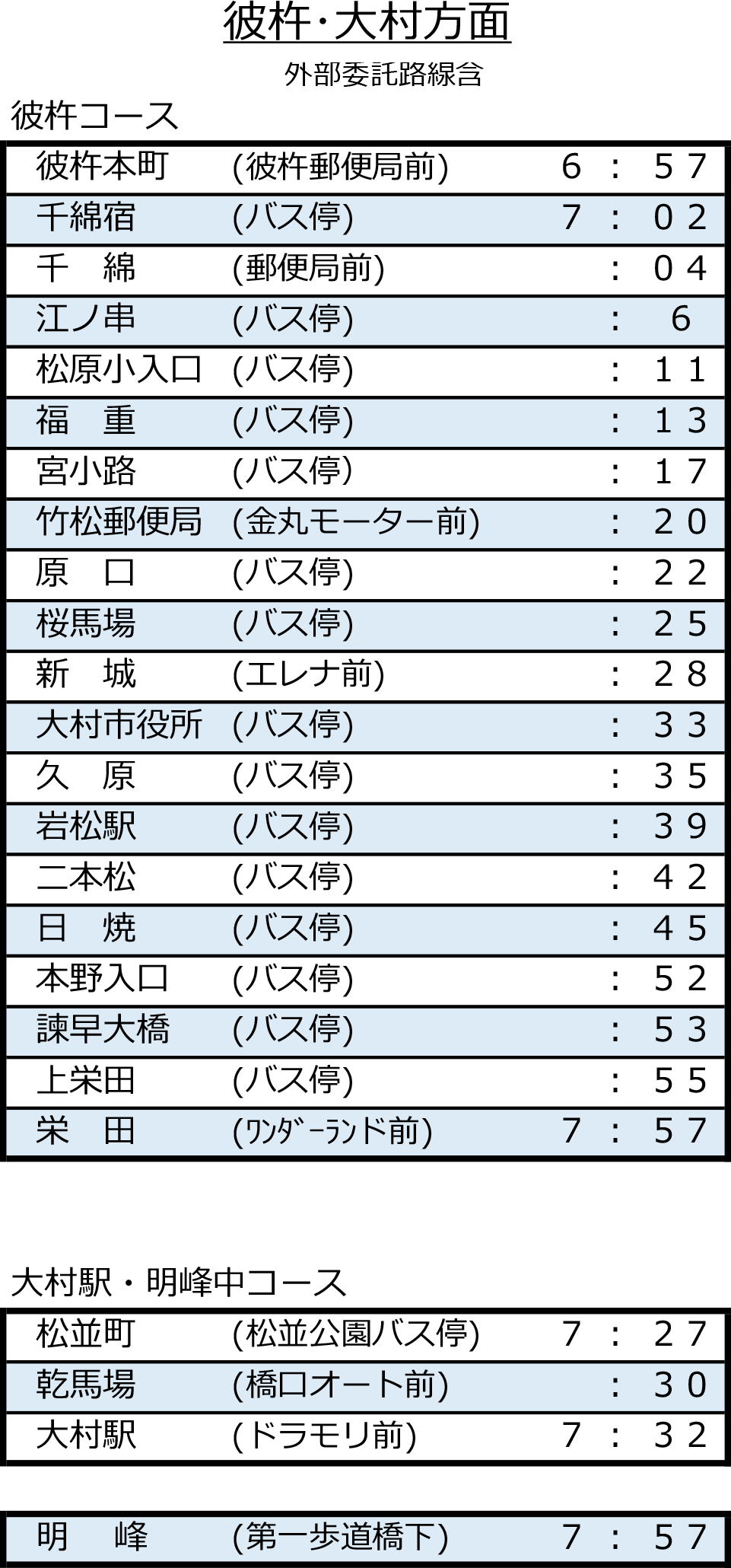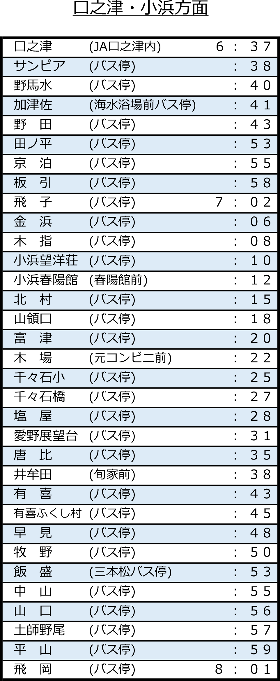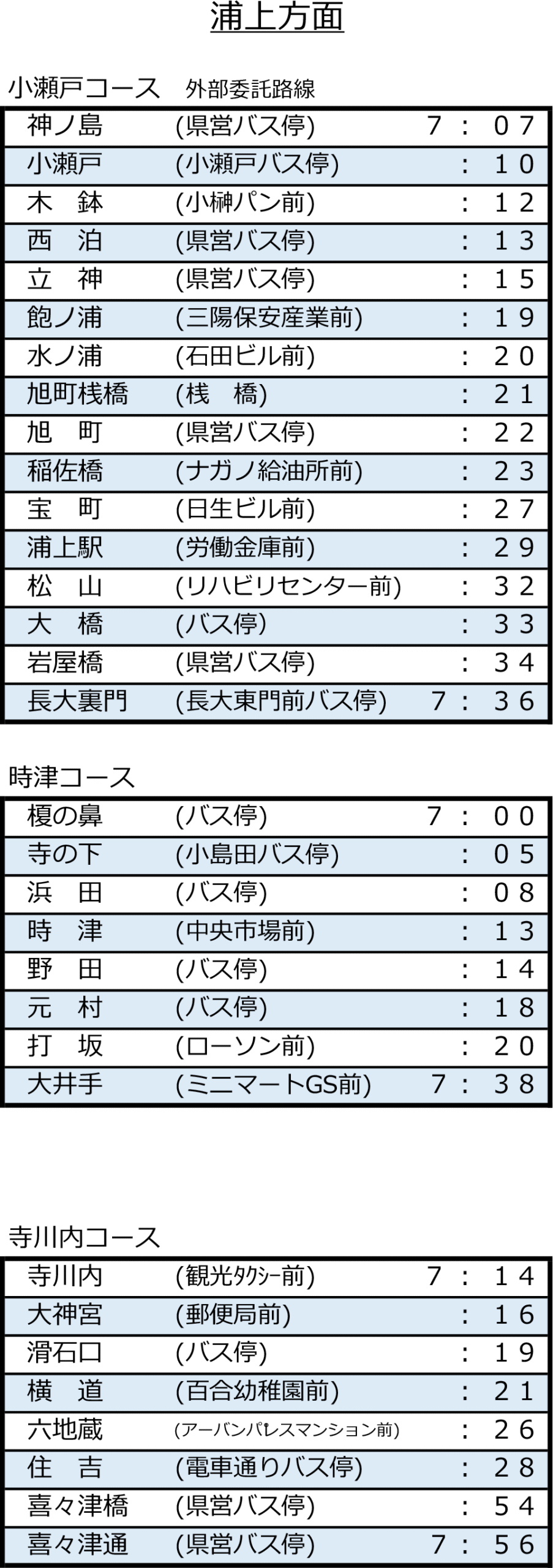 スクールバス乗車区分及び時刻表(令和7年10月1日改訂) 変更になっている場合がありますので詳しくは本校までお尋ねください。